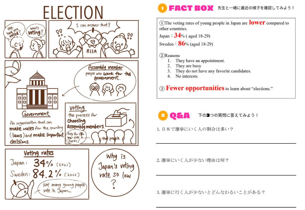 実際の授業では、コーチがニュース記事やイメージ画像を使い、社会時事に関するトピックを取り上げながら、英語で自分の意見を述べる練習を進めました。最初、真鈴さんは英語で自分の意見をまとめるのに苦戦し、戸惑いましたが、コーチと一緒に何度か反復して練習を重ねるうちに、少しずつ自分の考えを英語で伝える感覚がつかめてきました。